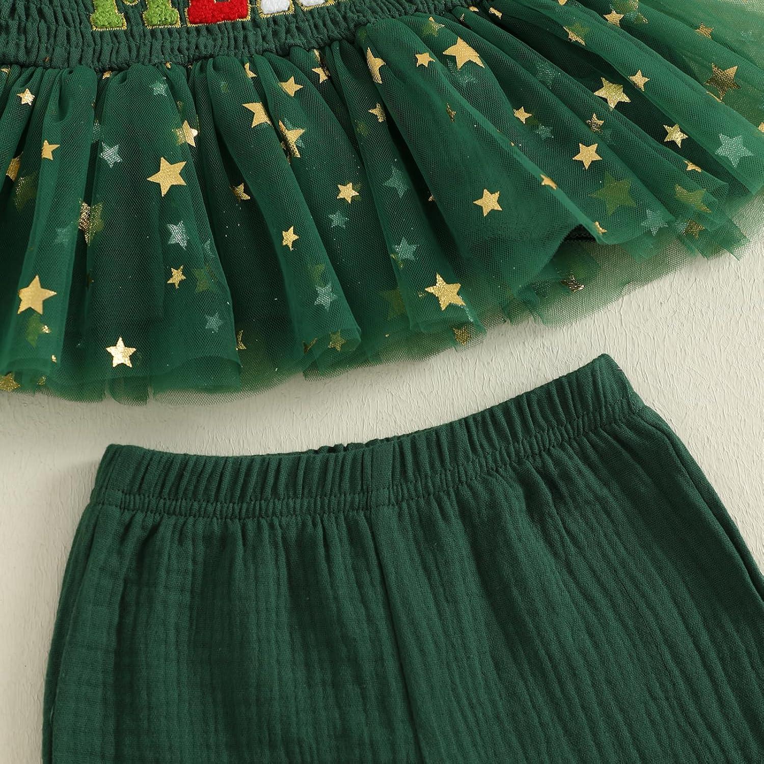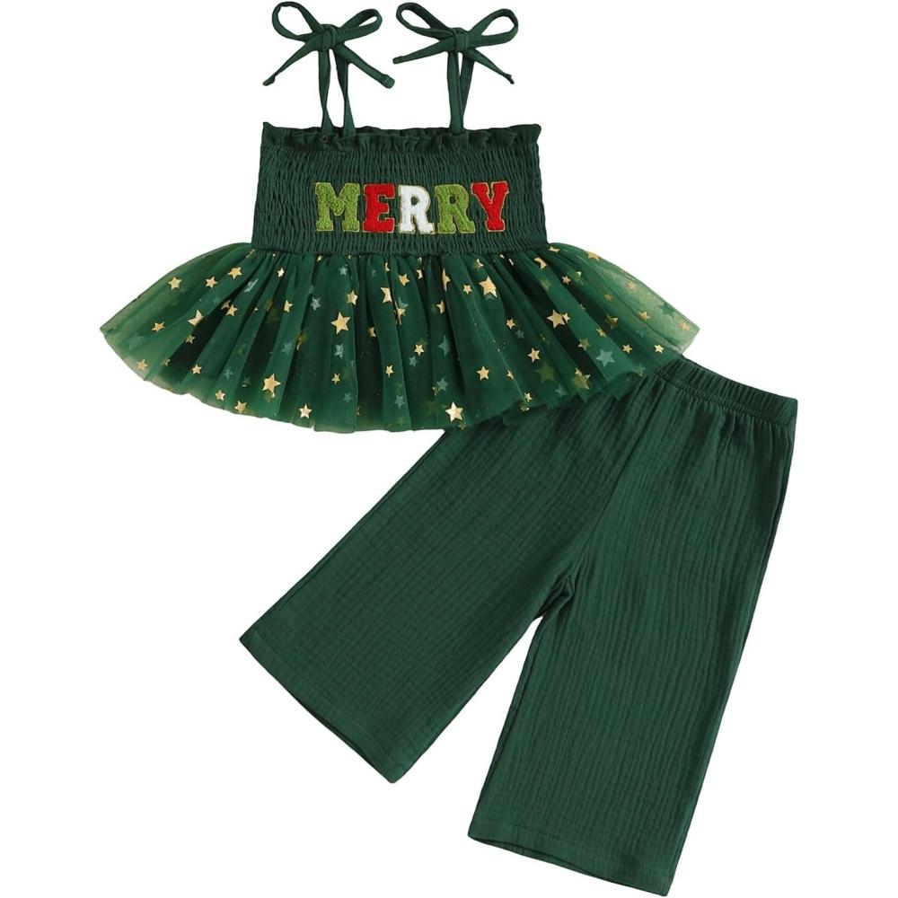 Kuriozud Halloween Toddler Baby Girl Outfit Pumpkin Patch Tank Top+Wide Leg Pants Set Kids Little Girl Halloween Clothes(Xmas Green)