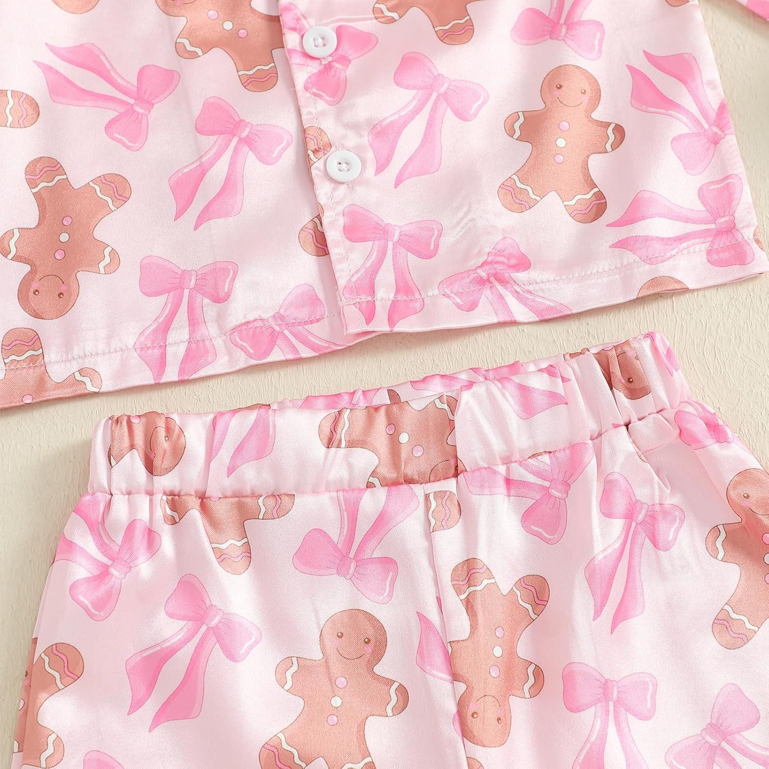 imageKuriozud Kids Christmas Pajamas Toddler Girl Santa Feather Trim Button Down Tops Pants Girls Bow Sleepwear Silk Satin Pjs SetZ Gingerbread Man Pink