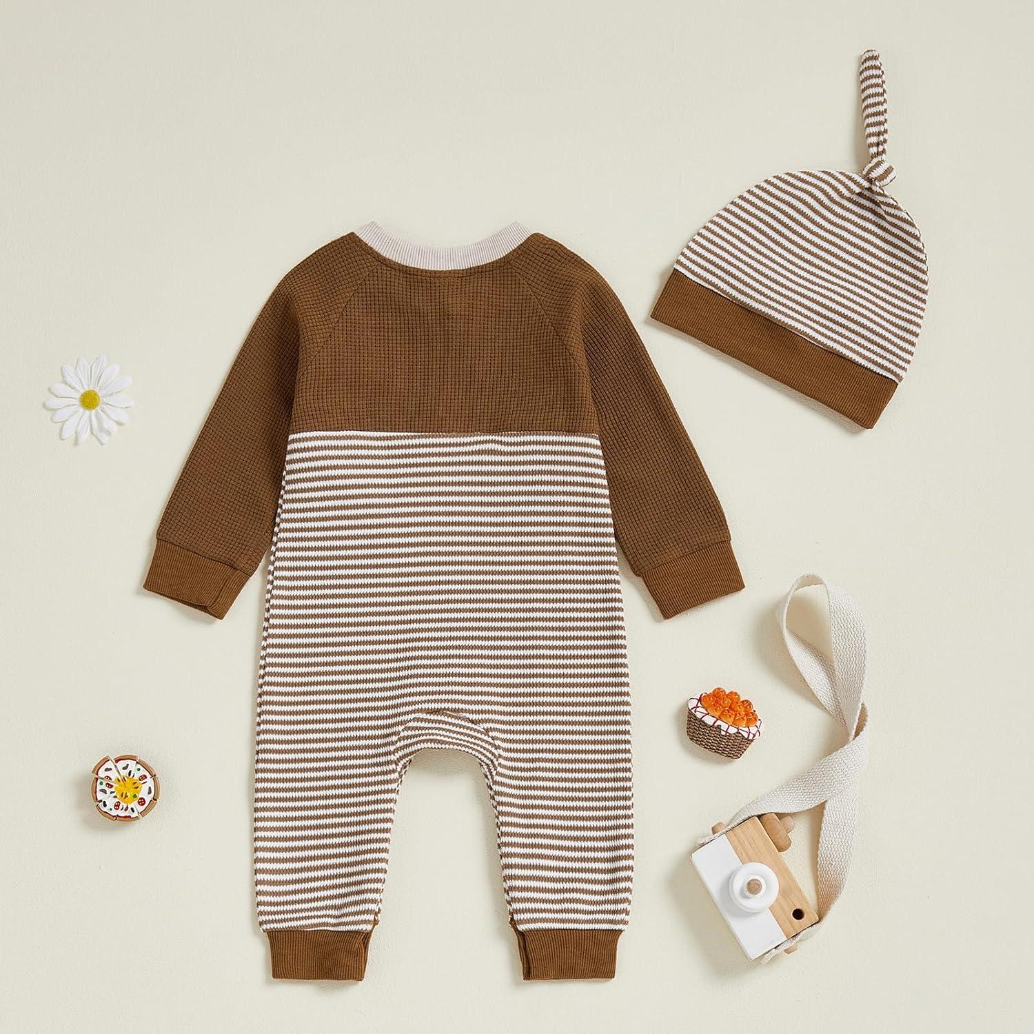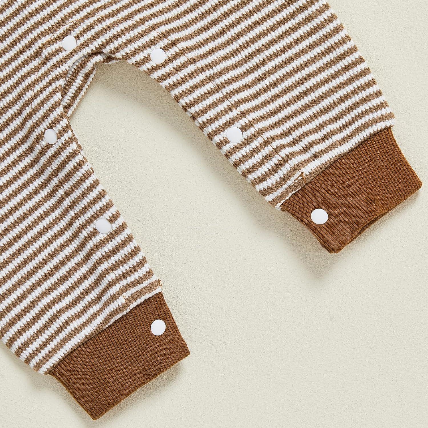 imageKuriozud Newborn Infant Unisex Baby Boy Girl Clothes Button Romper Jumpsuit Basic One Piece OutfitsStriped Long Sleeve Color Block Brown