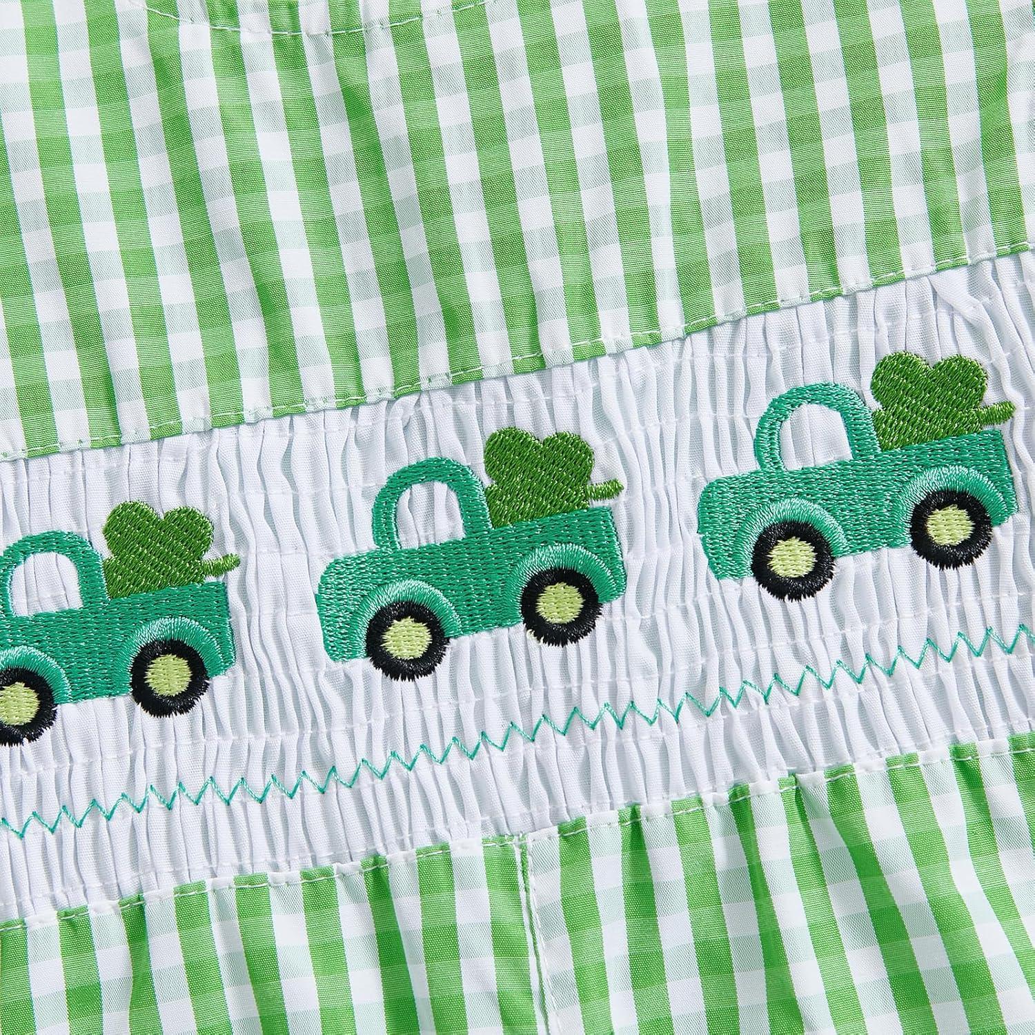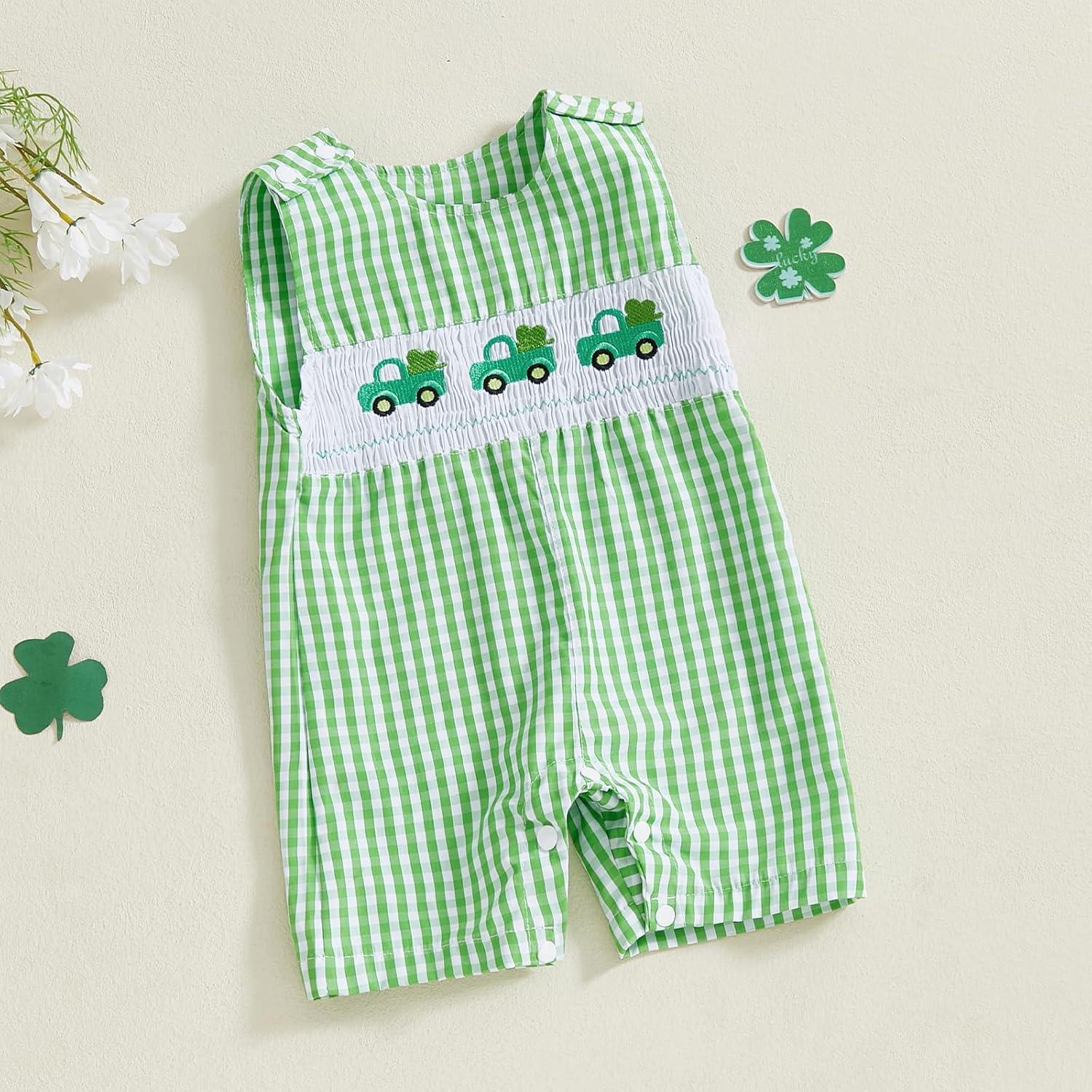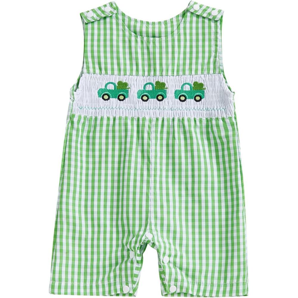 imageKuriozud Smocked Baby Boy Girl Clothes Sleeveless Romper Jumpsuit Overall Newborn Infant Clothing Spring Summer Outfits St Patricks Day Car Shamrock 36 Months