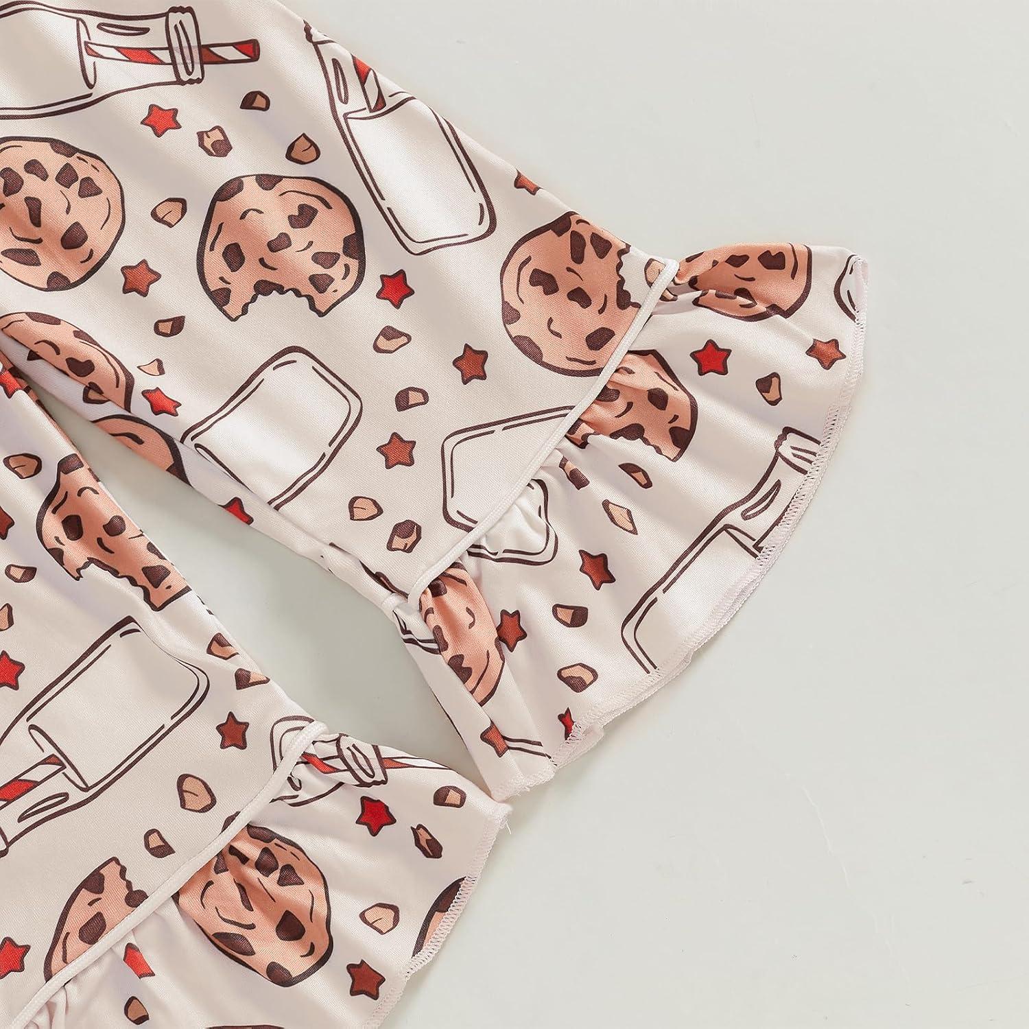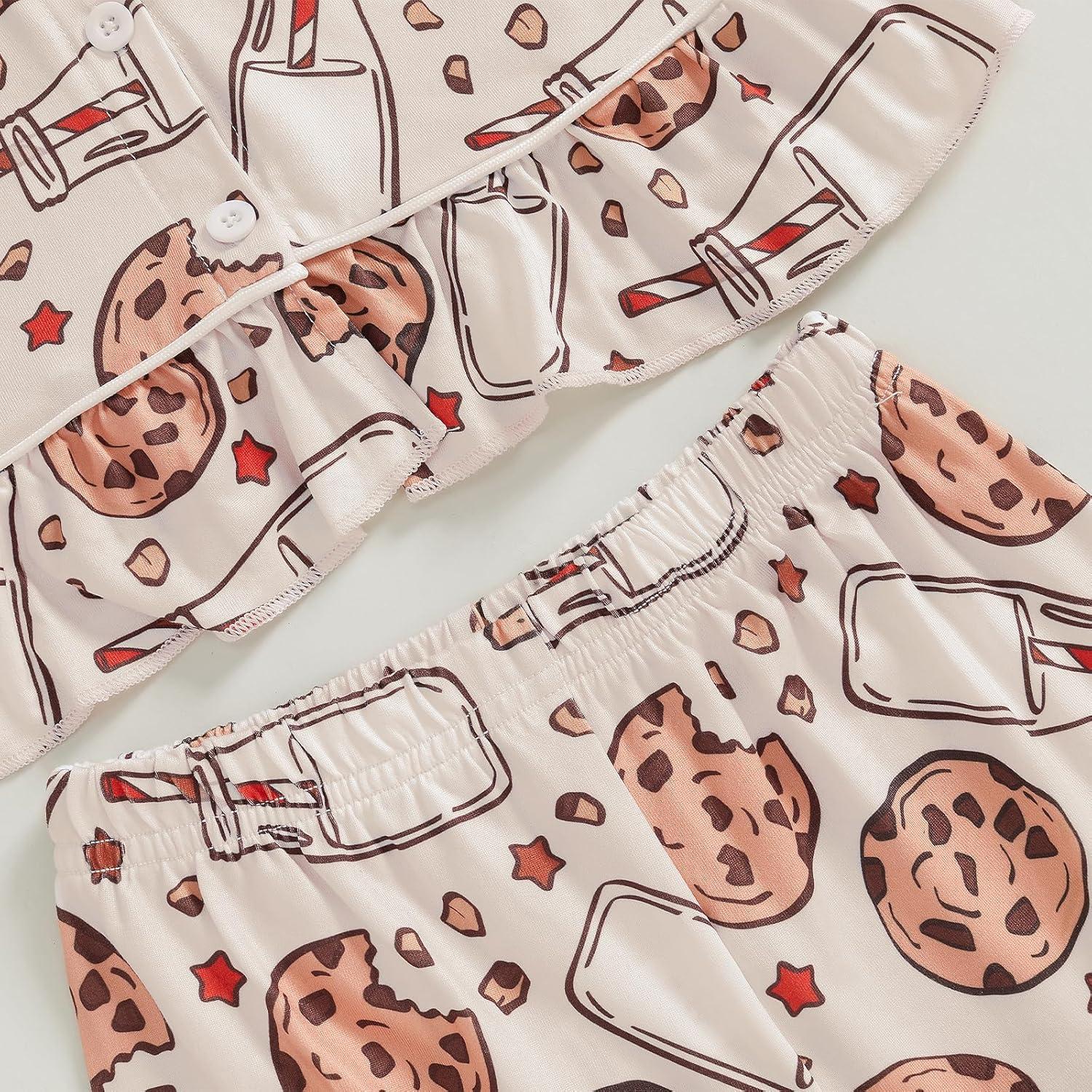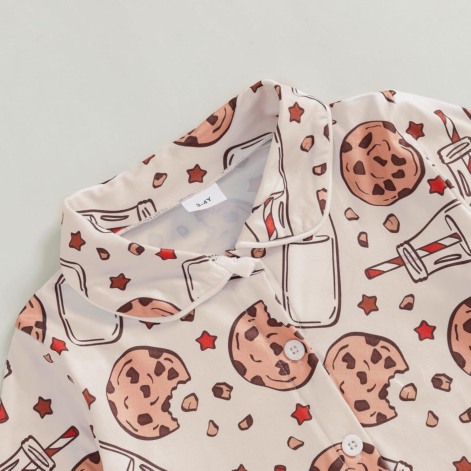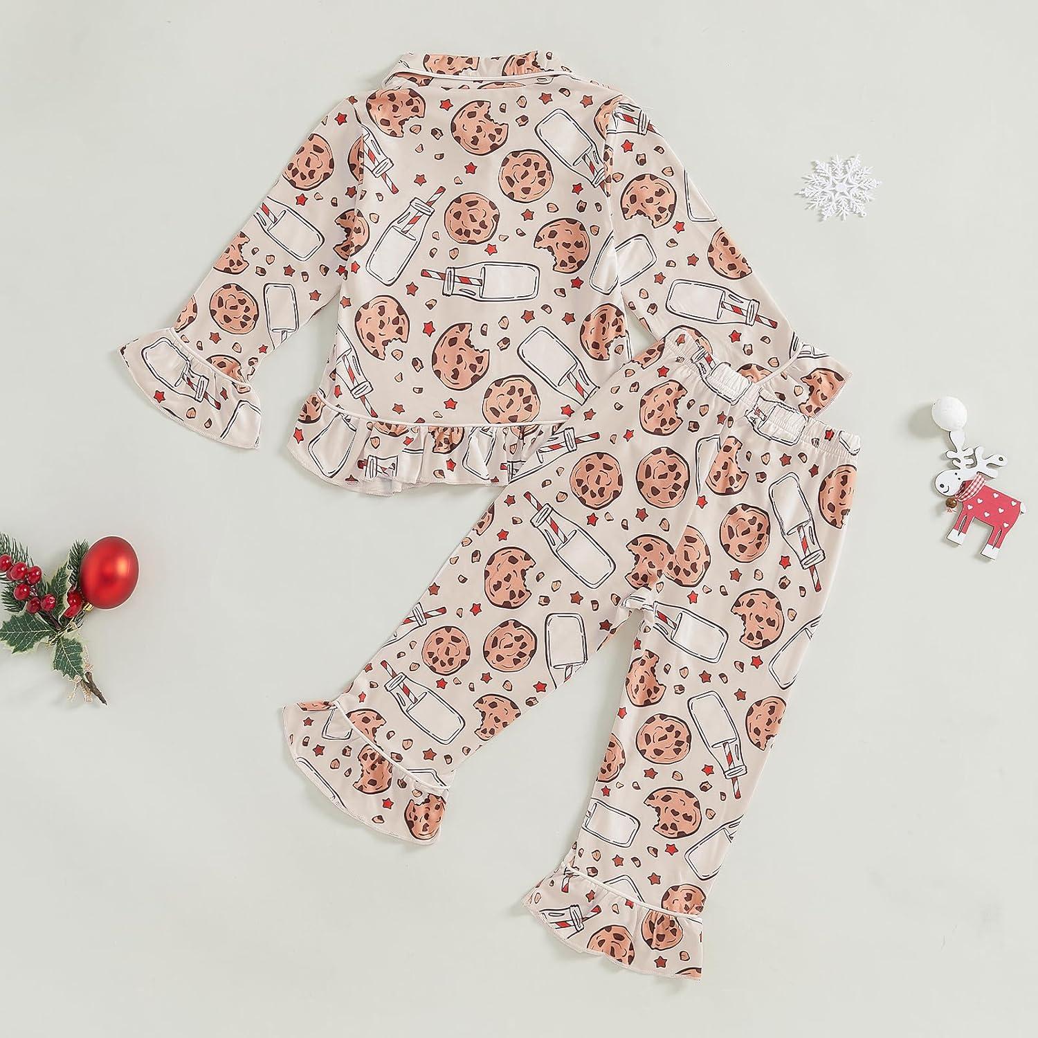 imageKuriozud Toddler Girl Christmas Silk Pajamas Ruffle Button Down 2 Piece Pajama Set Kids Little Girls Pjs Nightgown OutfitBeige Cookie