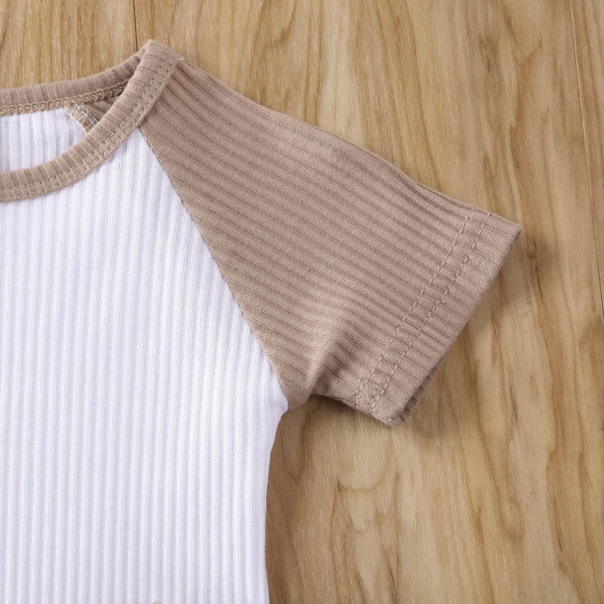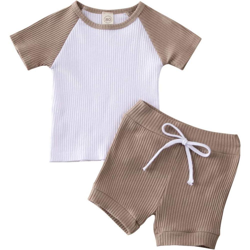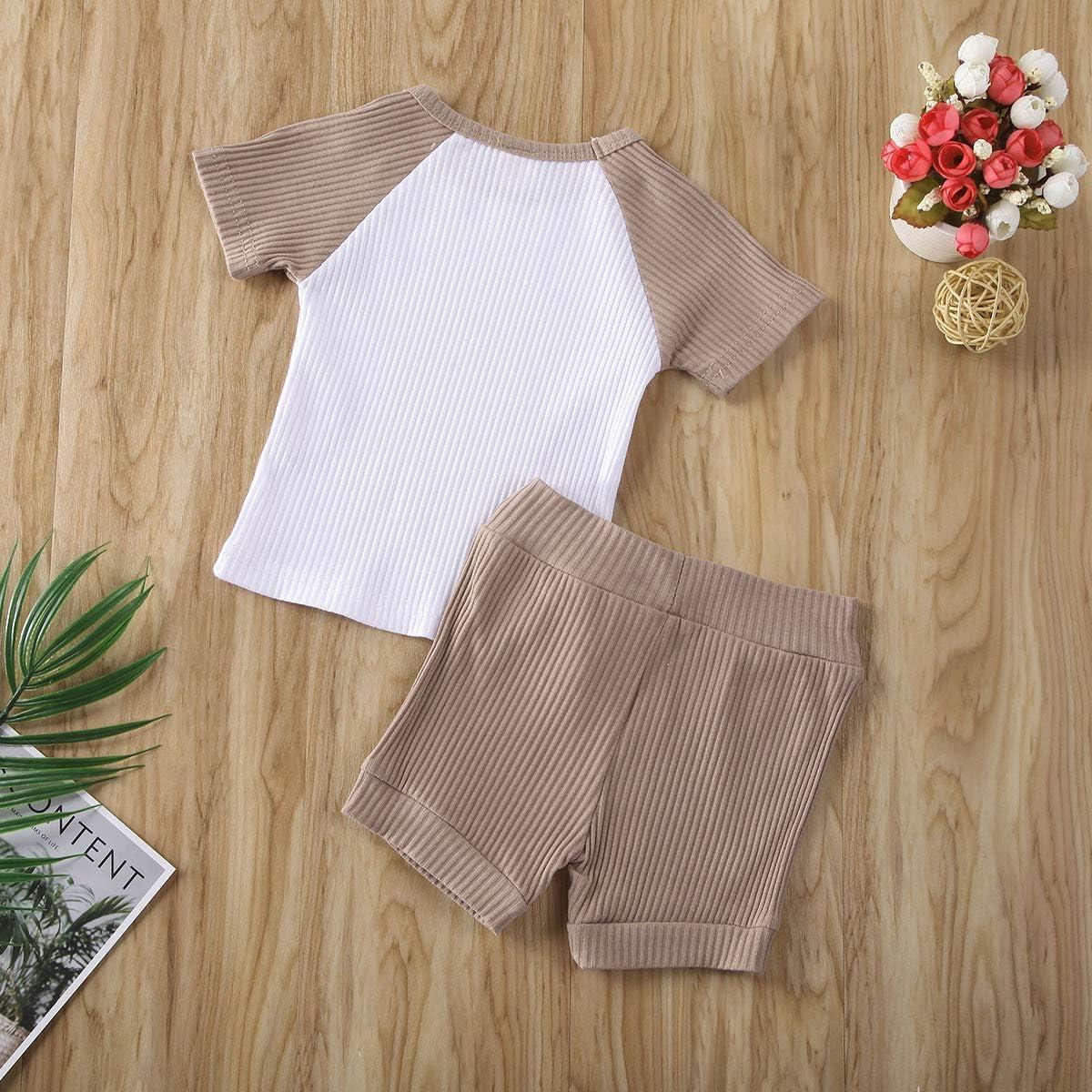 Toddler Baby Boy Girl 2 Piece Summer Clothes Patchwork T-Shirt Tops + Solid Shorts Outfits(Brown)